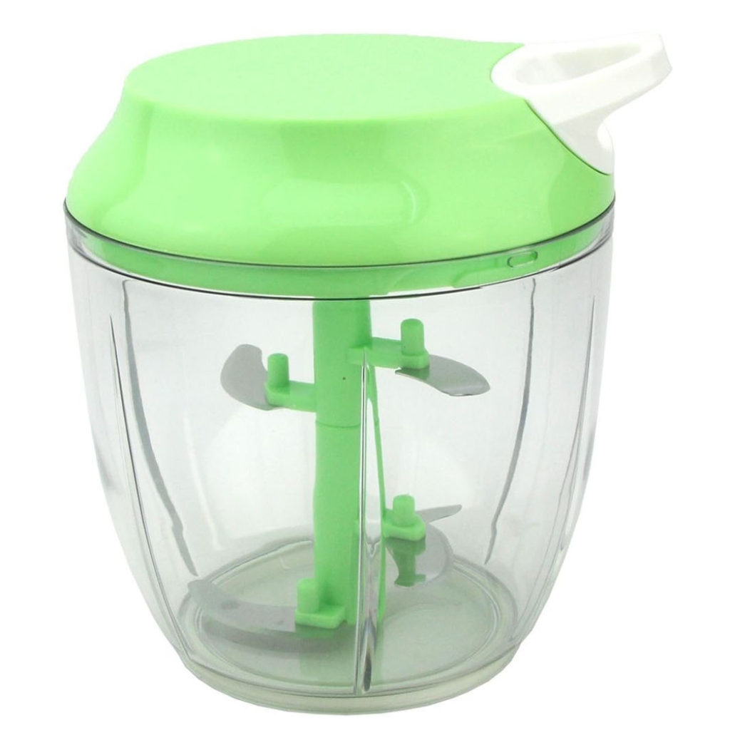 O processador de alimentos é ideal para triturar e agilizar os seus processos dentro da cozinha. possui cinco lâminas giratórias de aço inoxidável, perfeitas para lidar com todos os tipos de verduras e legumes, picando de uma forma muito mais fácil e rápida e sem bagunça, as lâminas são acionadas através de uma corda retrátil. são práticas de se limpar, resistentes, econômicas e ocupam pouquíssimo espaço.
