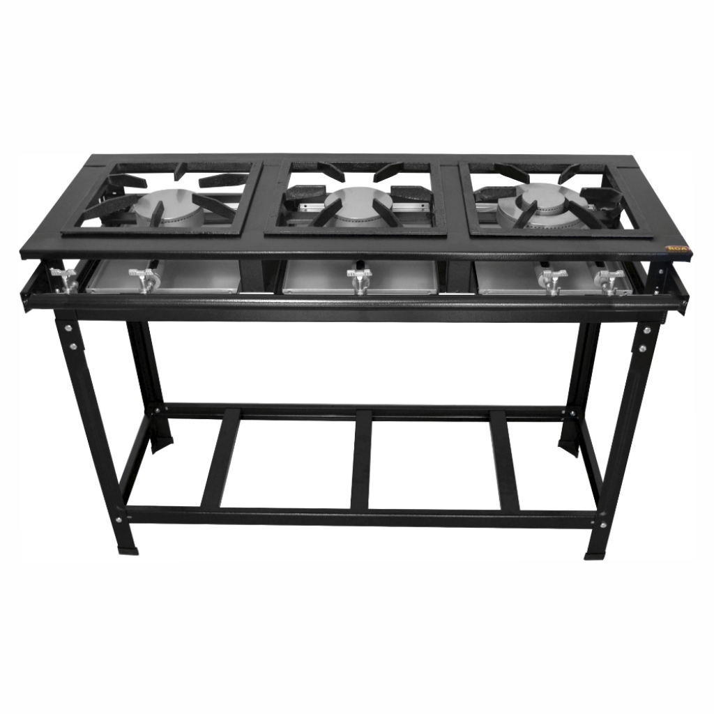 Quantidade de Bocas: 03 Bocas Baixa Pressão (01 dupla e 2 simples) com pés